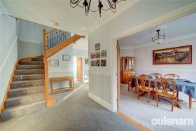 Entrance Hall which has stairs that ascend to the first floor with a store cupboard underneath. There is a window looking out to the front and doors that radiate off to the dining room, the kitchen/breakfast room, the study, the w.c and the,