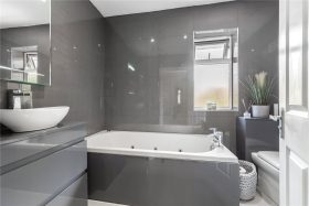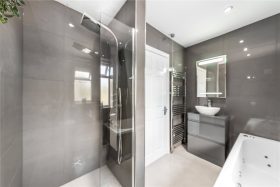 To the first floor, the accommodation comprises two generous double bedrooms and a well-proportioned single bedroom. The bedrooms are served by a contemporary luxury bathroom, beautifully appointed with a Jaccuzi bath, wet-room style shower fitted with a mains shower, finished with modern tiling, underfloor heating and fittings.