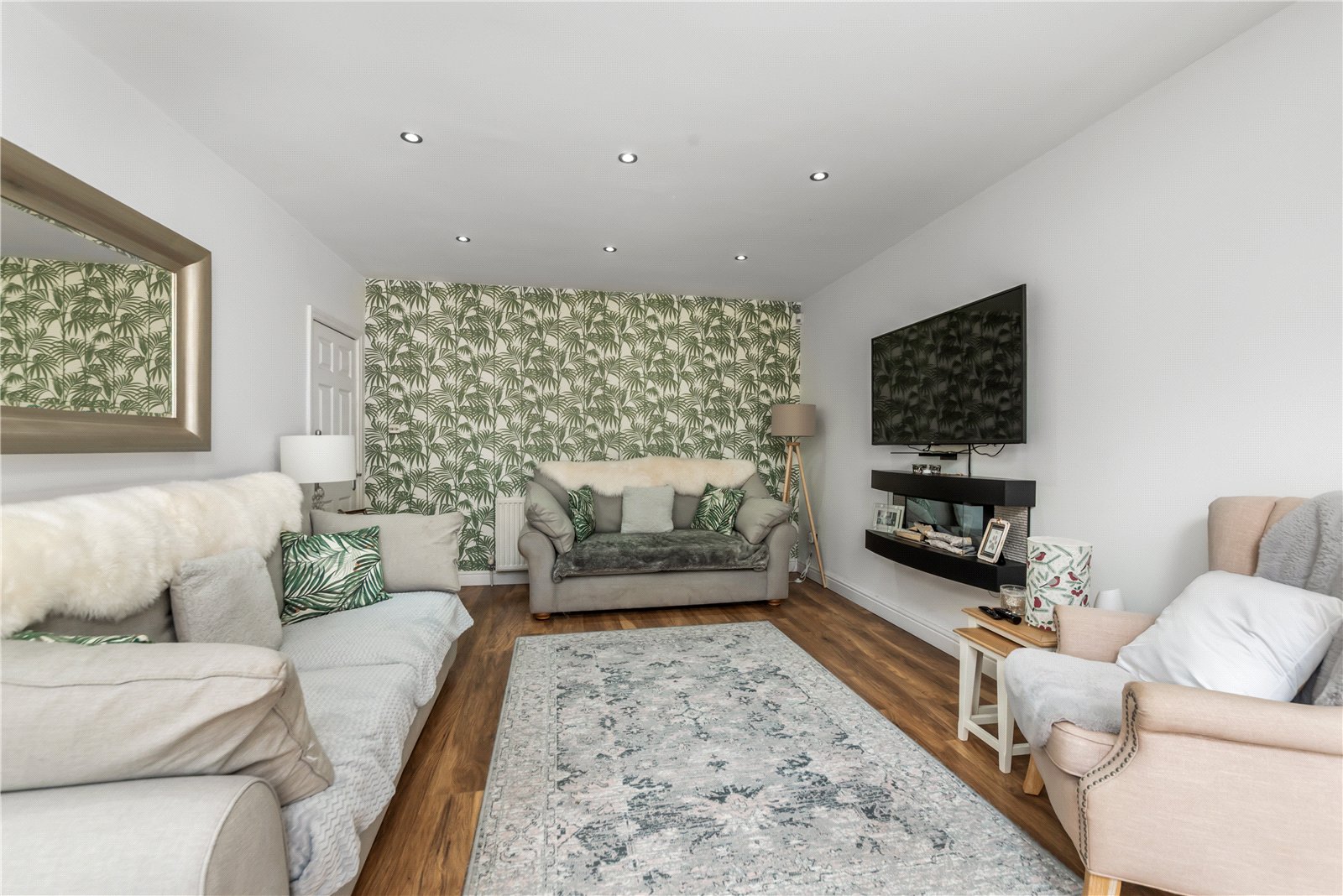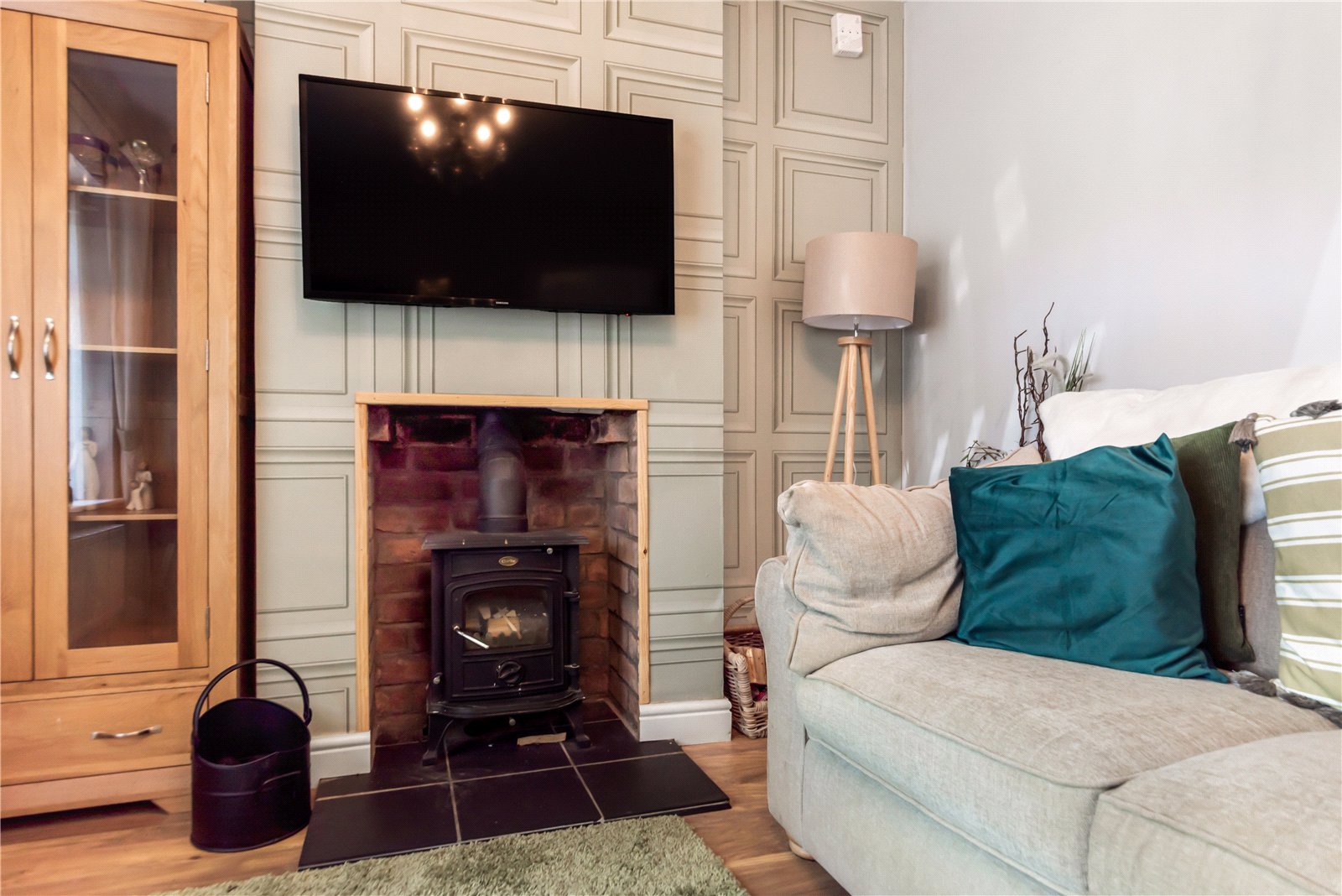 The property opens with a welcoming entrance hall, setting the tone for the quality and attention to detail found within. To the front, there is a stylish living room featuring a bay window, enhanced by mulit fuel log-burning stove, creating a warm and inviting space.