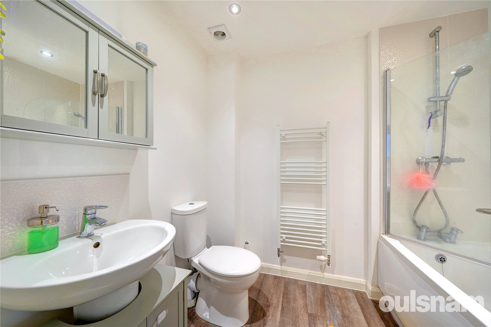 * Bathroom comprises low level dual flush wc, pedestal wash hand basin and panel bath with shower over.