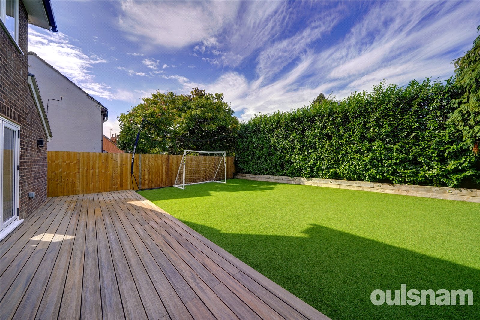To complete this lovely home is a low maintenance rear garden, with high quality astro turf and composite decking, surrounded by mature hedging and trees for privacy and greenery. To the front is a large driveway, with space for multiple vehicles.
