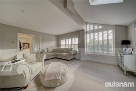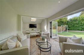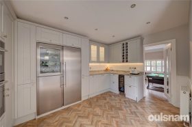 Step into a welcoming entrance hall that leads to a versatile room, currently utilised as a study. Progress down the hallway to discover a front-facing living room, with double aspect windows and a stunning roof lantern that floods the space with natural light. This elegantly panelled room features built-in plantation shutters for added charm and privacy. At the rear, the spectacular Kitchen/Breakfast/Dining room awaits, boasting double bifold doors that seamlessly connect to the garden, along with a roof lantern that enhances the dining experience. The kitchen is a chef's dream, featuring an island with a sink and induction hob, shaker-style cabinetry, built-in fridge/freezer, drinks cooler, and an additional wine fridge, all complemented by luxurious granite worktops. Convenient access to a utility room ,guest WC and further reception room adds to the functionality of this space. I