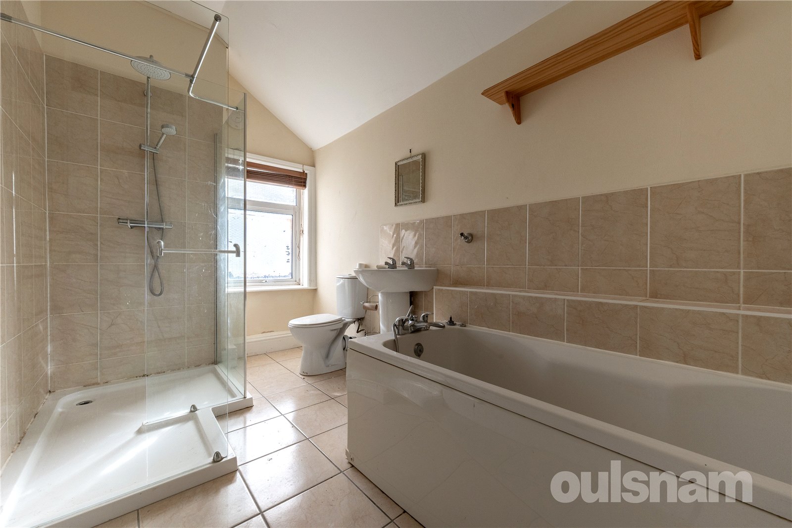 *Upstairs bathroom with white bathroom suite with separate shower cubicle with shower fitment.