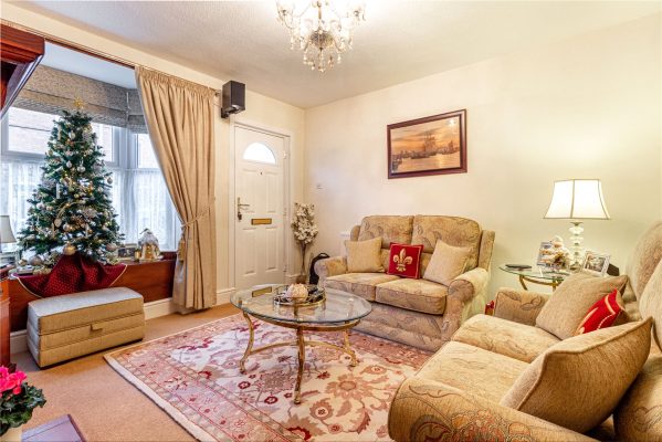 * An entrance porch leads into the reception hall where there are doors radiating off to the lounge, two bedrooms, bathroom and two storage cupboards;