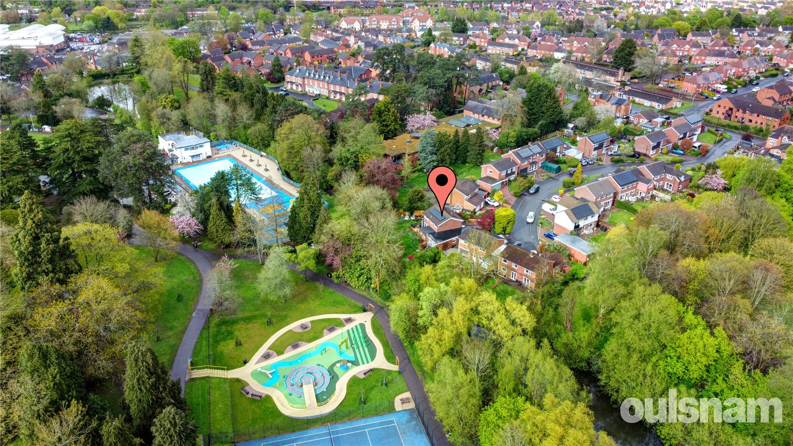 * To the rear there is a beautiful well established rear garden which is a real gardeners dream! Featuring an initial paved patio seating area ideal for entertaining, the remainder is laid to lawn with an abundance of mature flowers, trees and shrubs, a greenhouse, shed and the garden extends down to the stream where you can often see ducks swimming by, as well as views across the Droitwich Lido Park and there is a side gate.