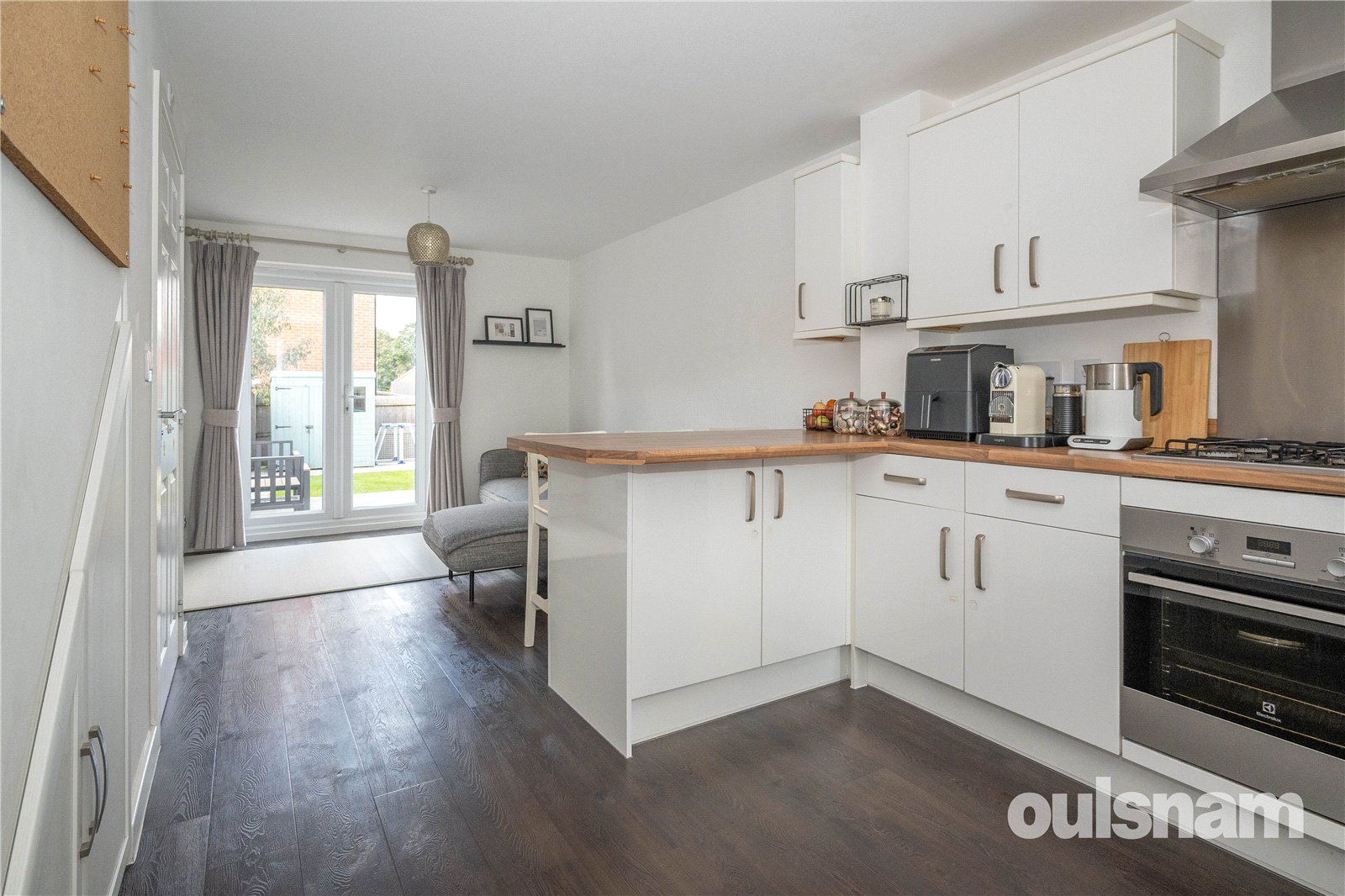 • Open Plan Kitchen/Lounge with a Range of Wall and Base Units, integrated fridge/freezer and storage cupboard under the stairs