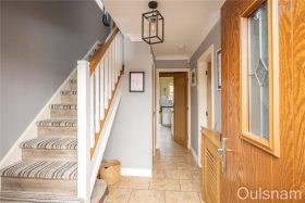 Hallway which has stairs that ascend to the first floor, a window looking into the porch and doors to the w.c, the kitchen/breakfast room and the,