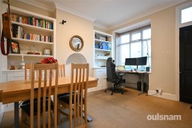 * Two reception rooms; front room with feature bay window, coving, built in shelving and bespoke units