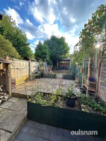 * A low maintenance rear garden with patio area, raised planted vegetable patches and decked area to the rear