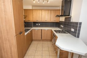 The open plan living space has wood effect flooring, a wall mounted security entry phone, two double glazed windows and open access to the kitchen area with tiled floor and fitted with a range of base and drawer units with inset sink unit, matching wall units, breakfast bar, integrated stainless steel oven with four ring gas hob and extractor fan over, integrated fridge/freezer, dishwasher & washing machine and tiled splash backs. A door leads in turn to the inner hall.