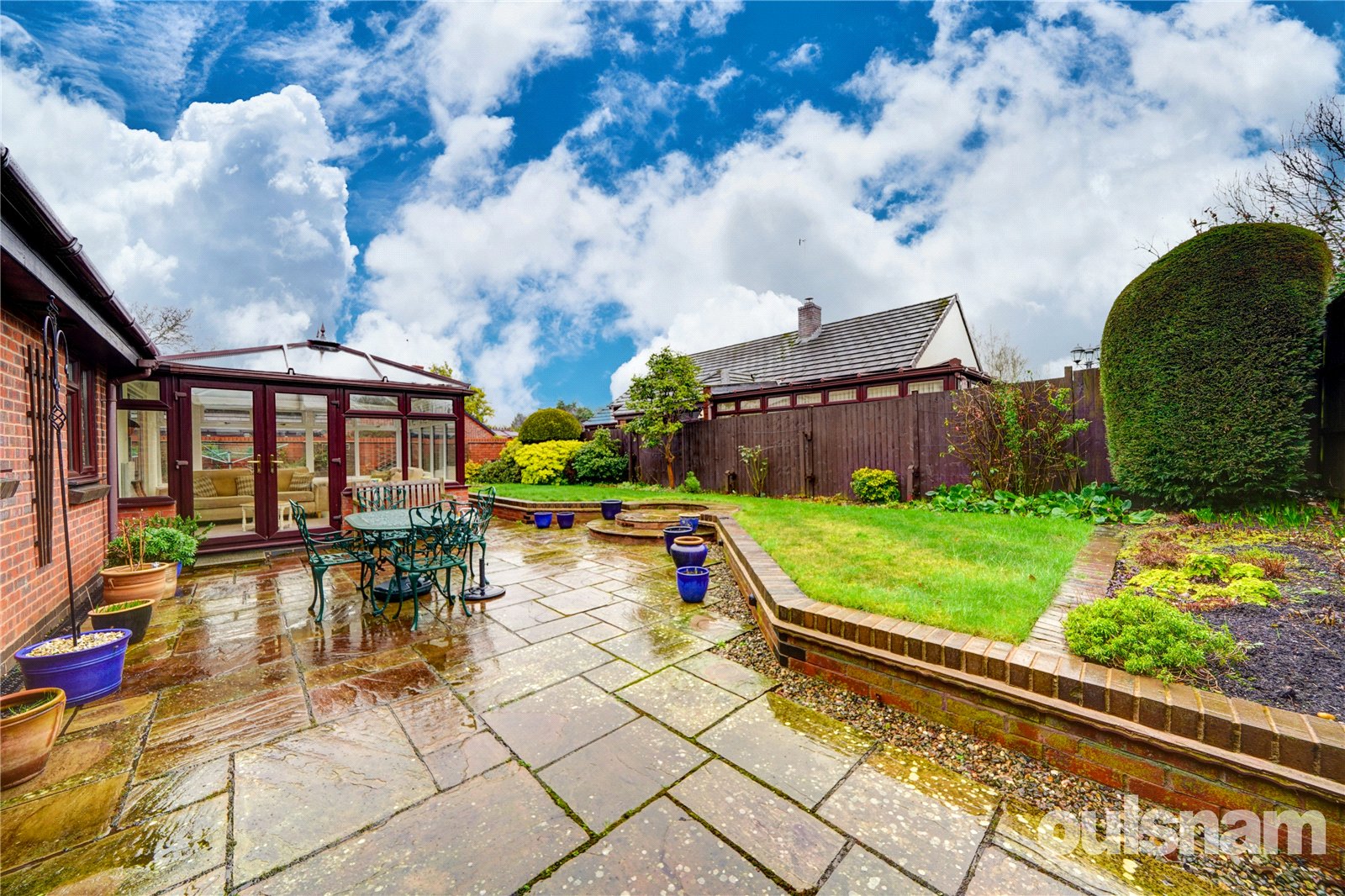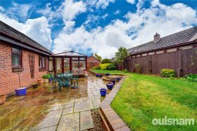 Faces a south easterly direction and can be accessed from the side gate and doors from the conservatory and kitchen. Beautifully landscaped to feature an initial paved patio area which extends across the rear of the property to the paved pathway leading round to the side gate and to the other side of the property and door into the kitchen, where there is a gravel area suitable for drying, hard standing for a shed and this area offers further scope to extend STPP, a dwarf retaining brick wall borders the remainder of the garden which is laid to lawn and accessed from paved steps, with an array of flowers, trees and shrub borders and is enclosed by wooden panel fencing and brick wall.