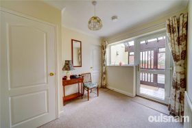 Having access to loft, wooden panel doors provide access into two separate storage cupboards with shelving and hanging space, the garage, all bedrooms, bathroom and part glazed and wooden panel doors lead into the kitchen and the