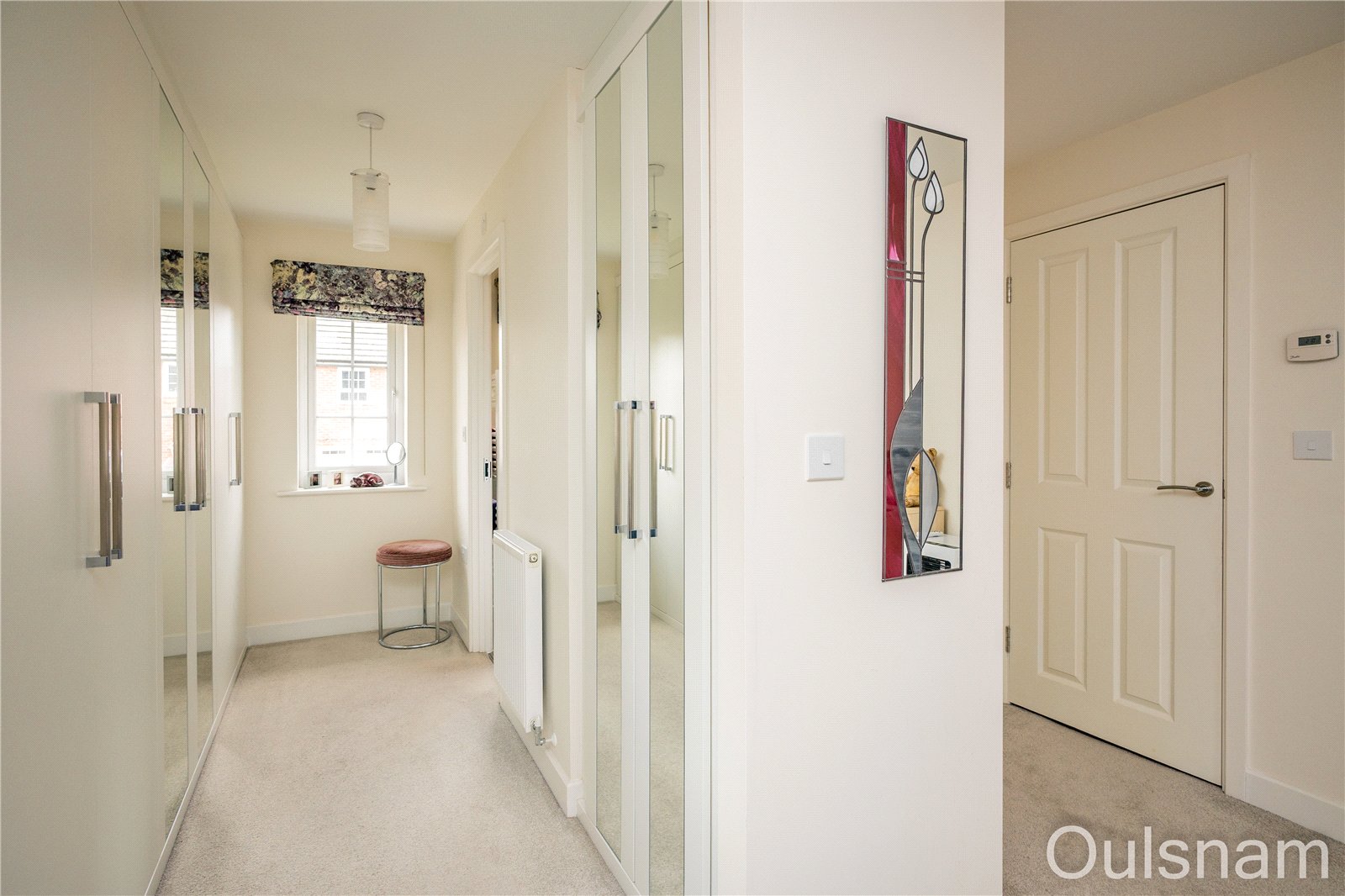 Bedroom one which spans the length of the house and has a dressing area with a host of fitted wardrobes, a triple aspect looking out to the front, side and rear of the property and a door to the,