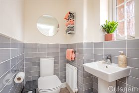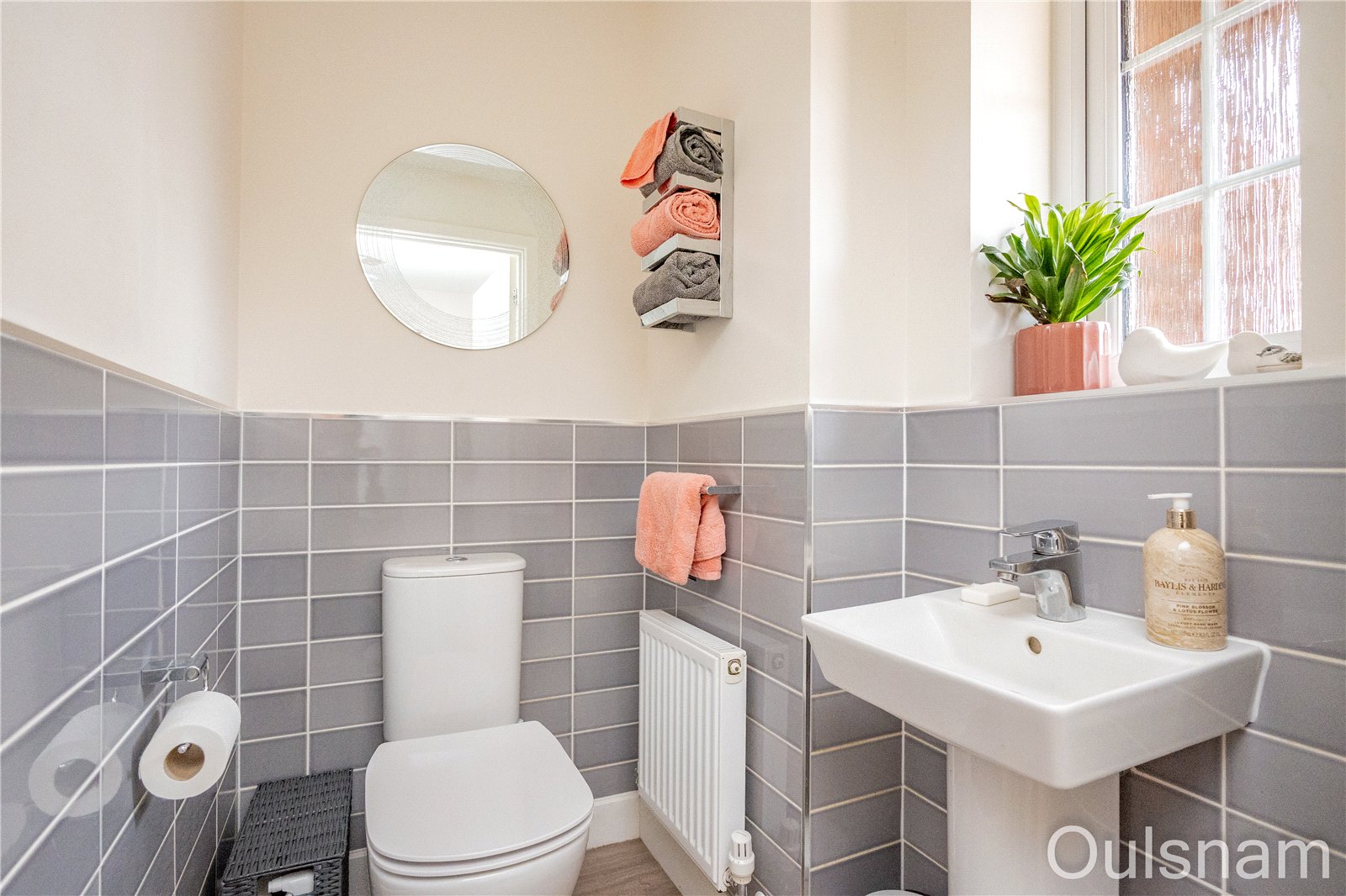 W.C which has a wash hand basin, a low level toilet and a frosted window looking out to the front.