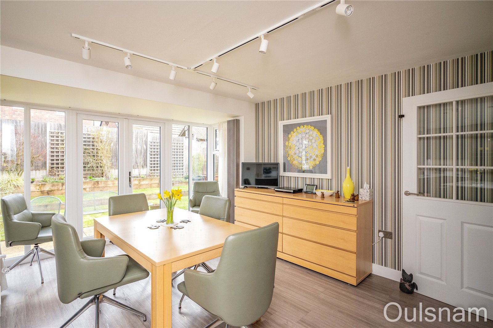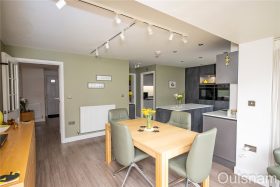 Kitchen/Breakfast room which has been remodelled by the current owners to offer modern open family living. The kitchen has a mixture of wall mounted and base units including an island with Quartz worktops over and an inset composite sink and a Quooker boiling water tap. There are a wealth of high end Siemens integral appliances including a double oven and grill with microwaving function ability, an induction hob with an extractor hood above, a tall fridge and connections for a twin chamber dishwasher. There is a dining area that leads onto a seating area which offers 270 degree views out to the rear garden with French doors that open out to the rear garden. There is a further window over the sink looking out to the rear of the property and internal doors to the hallway, the dining room and the,