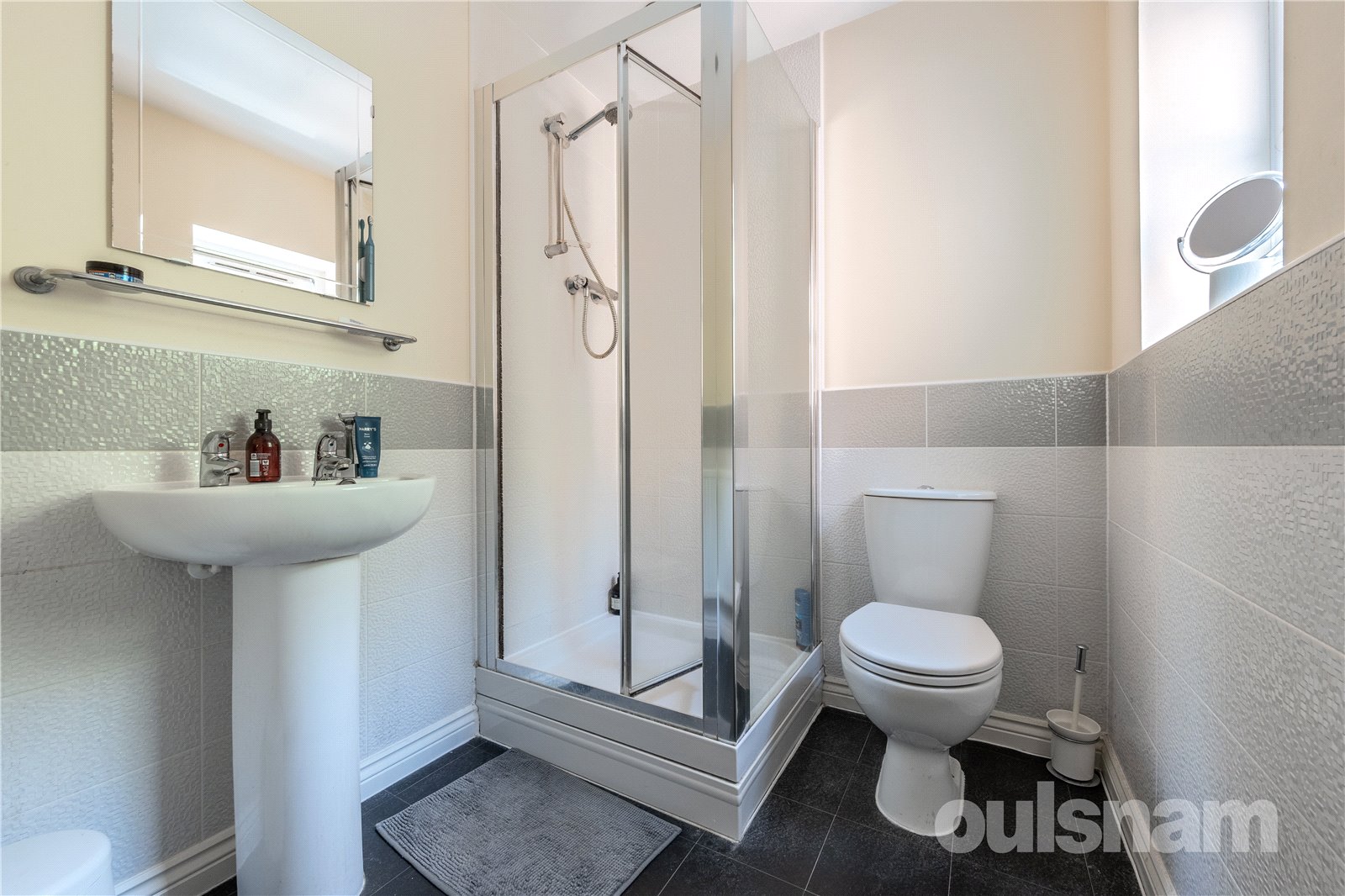 * En - Suite shower room to master bedroom, comprising; Shower cubicle with fitment, low level W.C and pedestal wash hand basin