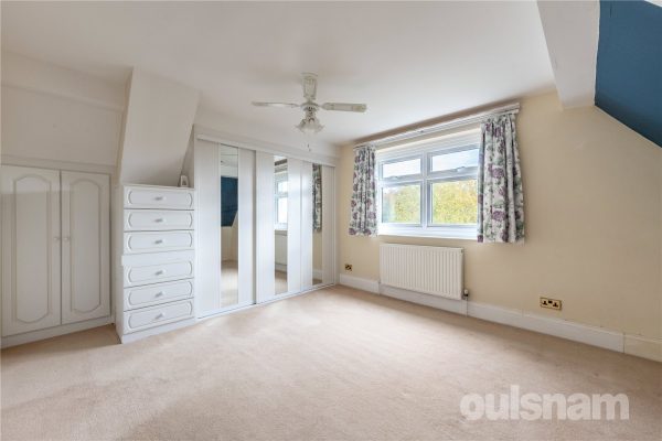 * Bedroom one which has windows looking out to the front and side and access to a storage cupboard