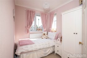 Bedroom two which has fitted wardrobes and a bay window looking out to the front.