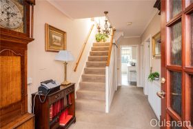 Hallway which has stairs ascending to the first floor with a storage cupboard underneath and further doors off to the kitchen, living room and,