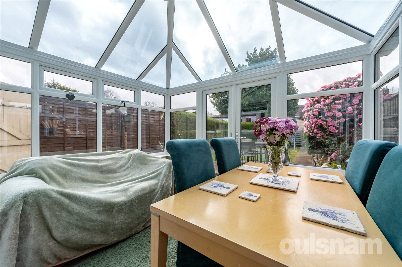 -Glass roof conservatory to the rear, with french doors out onto the mature private rear garden