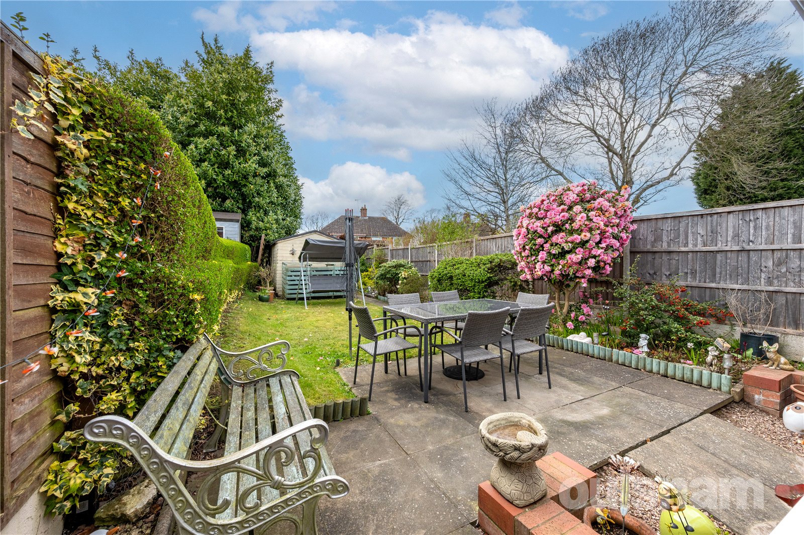 -Garden mainly laid to lawn, with patio nearer to the house, side access gate through to front, and garden shed at the end of the garden