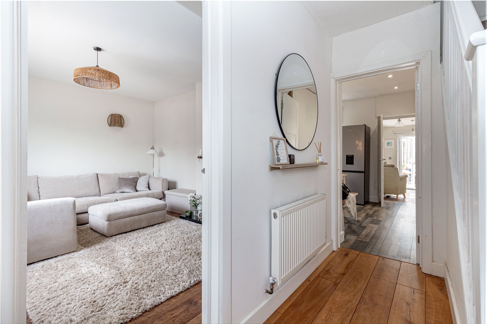 * Entrance hall with stairs rising to first floor accommodation, doors into the lounge and kitchen / diner.