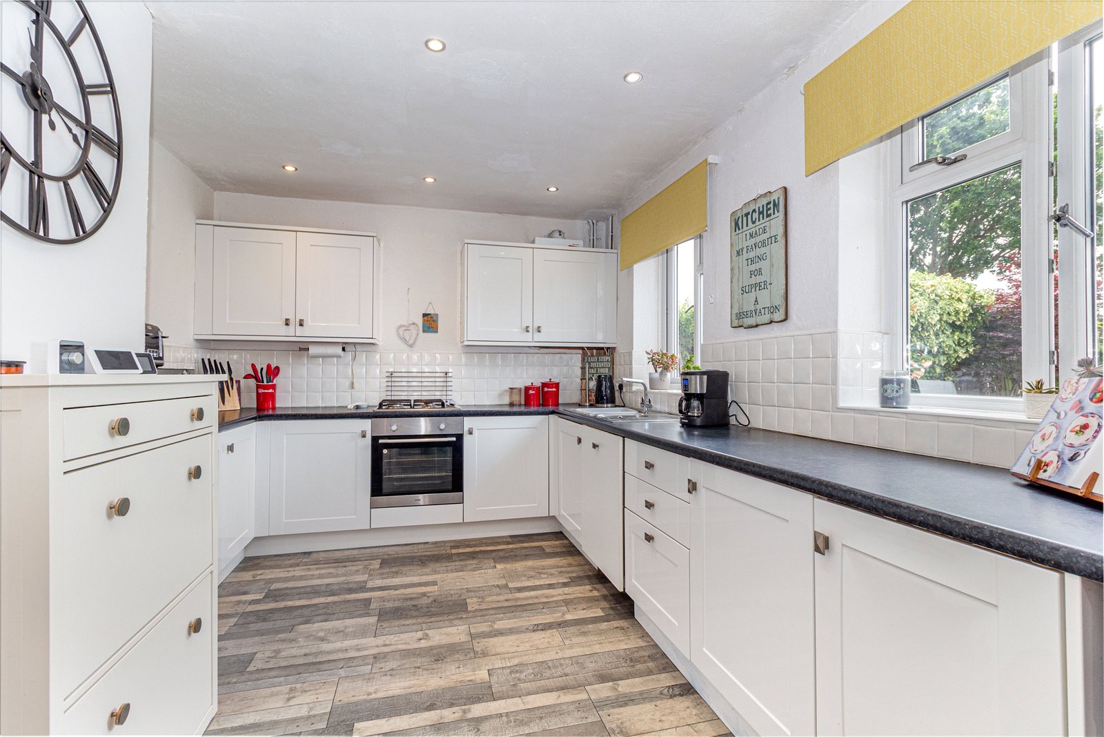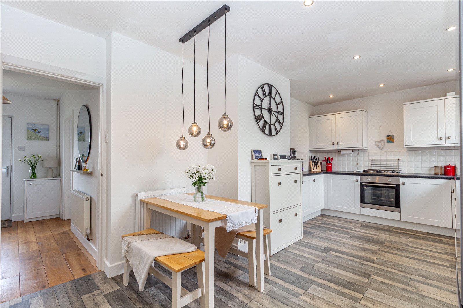 * Kitchen / diner with space for freestanding fridge/freezer, wall mounted gas central heating boiler, the added benefit of storage area which offers a useful pantry and a utility. A door leads to the garden room, with doors out to the rear garden.