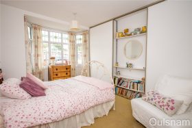 Bedroom one which has fitted wardrobes and a bay window looking out to the front.