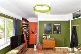 * A bright and welcoming reception room featuring a large bay window and a cosy log burner. The bay window adds space and light, while the log burner creates a warm focal point, perfect for relaxing.