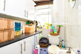 * The utility area is fitted with floor and wall-mounted cupboards and a work surface, providing practical additional storage and workspace. It also includes a W.C. and a wash hand basin for added convenience.
