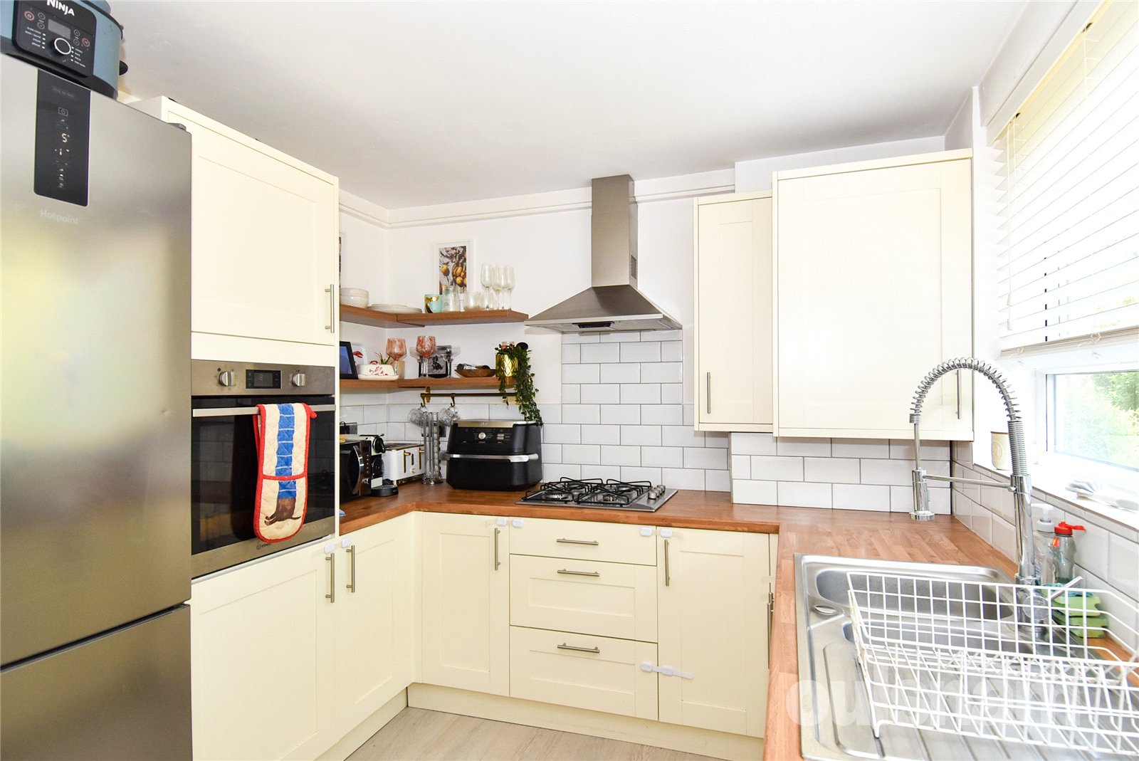 * The kitchen is fitted with a range of base cupboards and wall-mounted units, offering ample storage and workspace. It features an integrated cooker, hob, and extractor fan, and provides space and plumbing for a fridge freezer and washing machine, making it both practical and well-equipped for everyday use.