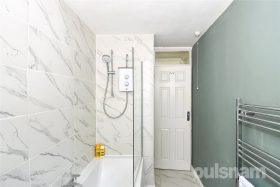 * The bathroom is fitted with a low-level W.C., a vanity wash hand basin, and a bath with a shower over, providing a practical and functional space suited to everyday use.