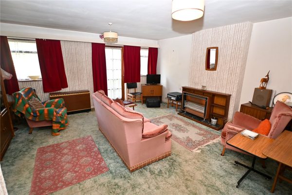 * Lounge with coving to ceiling, coal effect gas fire with surround and marble effect hearth.
