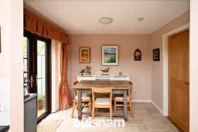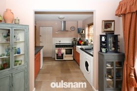 * The Kitchen comprises of a range of wall and base units, cupboards and drawers with Belfast Sink and mixer tap, range style 'leisure cooker'. Partly tiled splash backs, space for refrigerator and plumbing for washing machine and dishwasher, pantry with shelving and space for low level freezer, side access door.