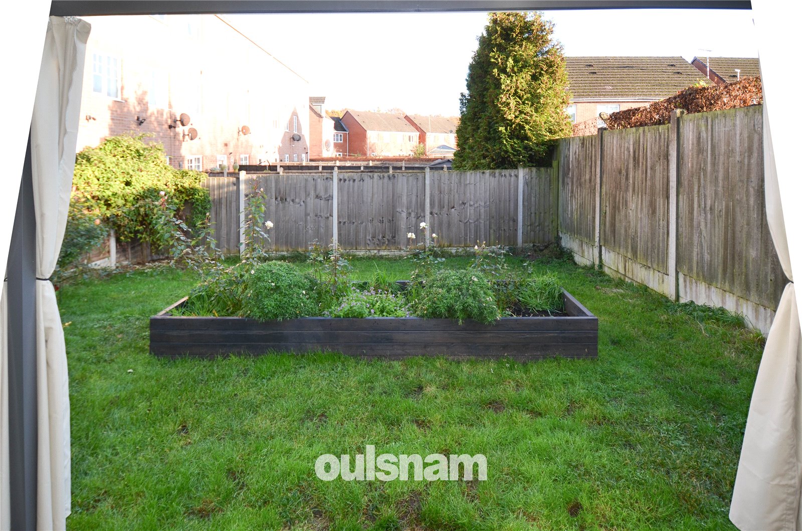 * Rear garden, with a decked seating area, stepping down to lawn with timber fencing to side.