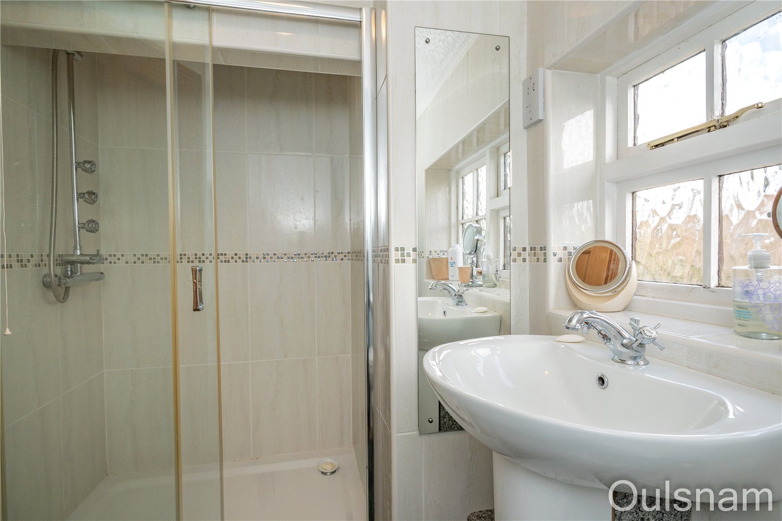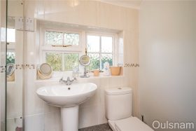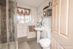 En-Suite Shower Room with window to the side, shaver point, heated towel rail, close-coupled WC, wash hand basin and shower cubicle with electric shower.