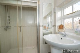 Shower Room with window to the side, radiator and fitted suite comprising large shower cubicle with electric shower, close-coupled WC and pedestal wash hand basin, cupboard housing the central heating boiler (for the Bungalow) and airing cupboard.