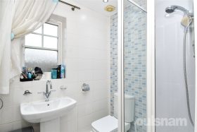 * The second-floor family bathroom is fitted with a WC, wash hand basin and a shower cubicle, providing convenient facilities for the upper level of the home.