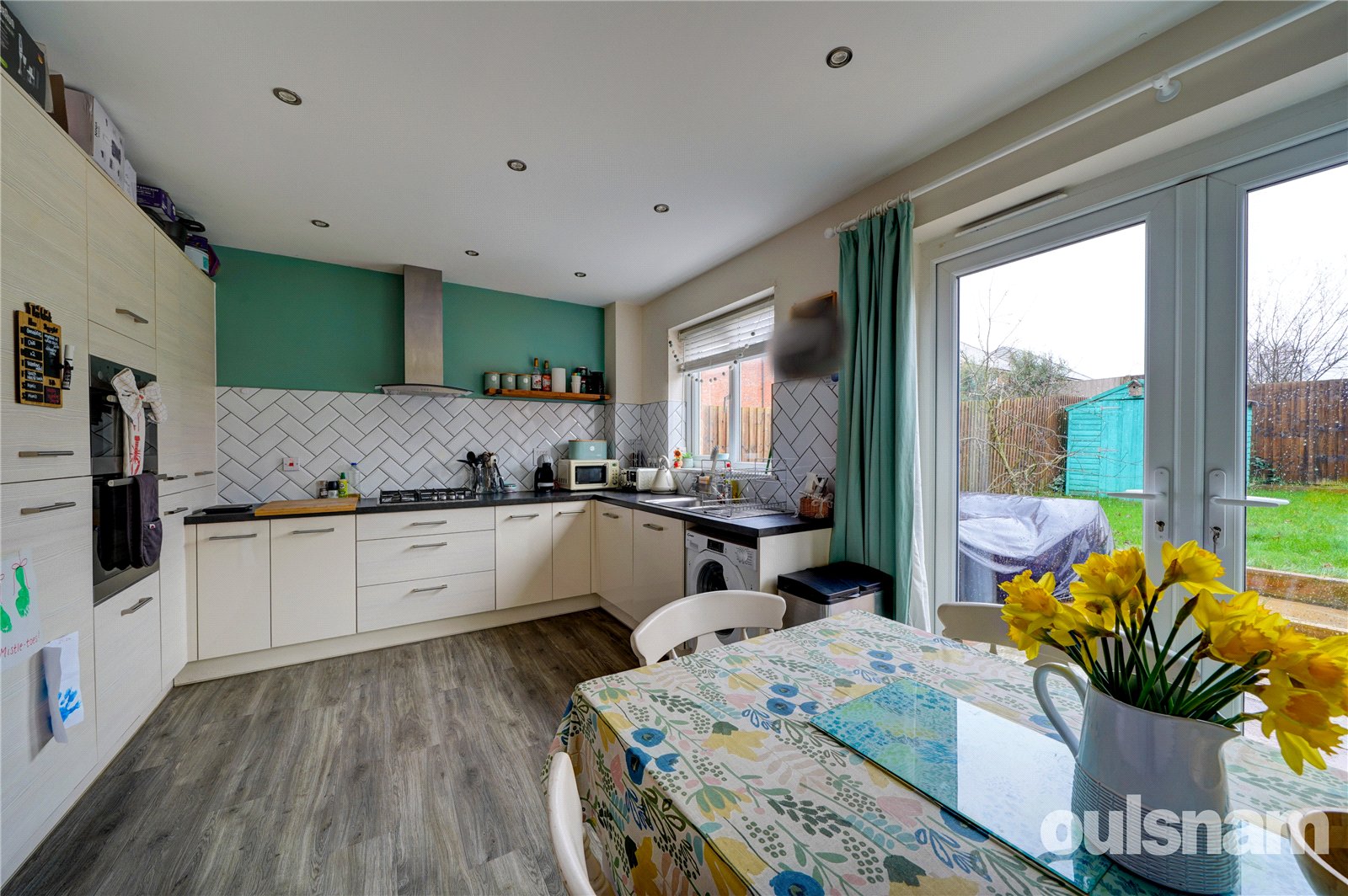 * A door from the lounge leads to the modern kitchen diner with integrated appliances to include a fridge / freezer, washing machine and dishwasher, eye level double oven and a four ring gas hob with overhead extractor. A distinctive space for a dining table and chairs, french doors lead out to the rear garden