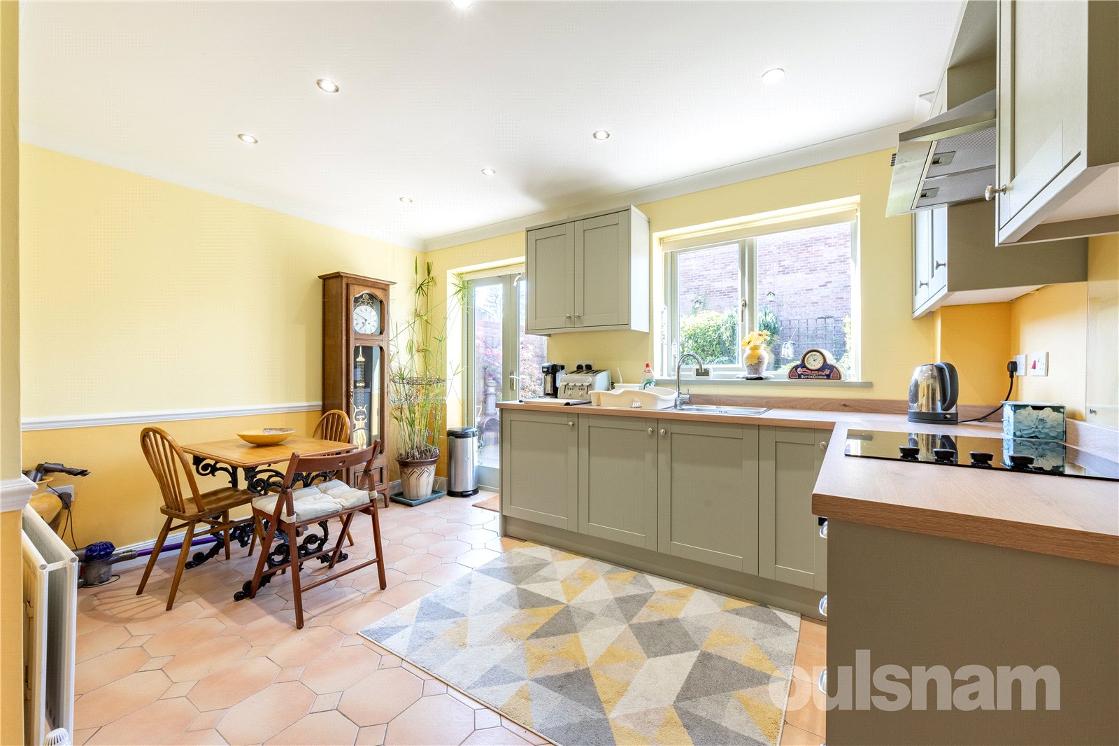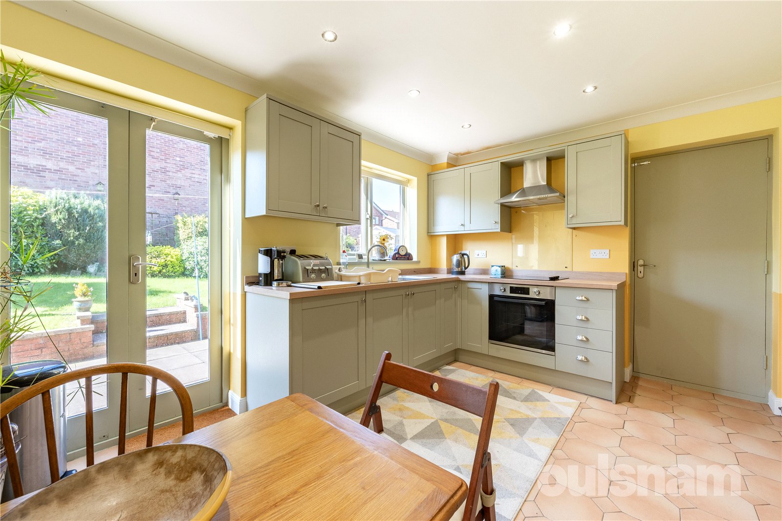-Modern Howdens Kitchen to the rear with fitted appliances. This was installed in 2024 and is full width, with doors leading to the garden & garage, and additional pantry offering extra storage space