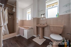 The family bathroom is fitted with a four-piece to include bath, shower cubicle, wash hand basin, dual-flush WC and windows to the front.