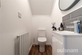 * The contemporary family bathroom is fitted with tiled flooring, a white suite to include, bath with shower over, wash hand basin and dual flush W.C. There is a heated towel rail, and an obscure double glazed window to the side elevation.