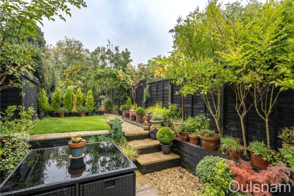 To the rear is the neatly maintained garden, offering an initial patio area and the rest being laid mainly to lawn, within fenced boundaries. There is side access through a pedestrian gate, a useful water tap, outdoor electric sockets and lighting.