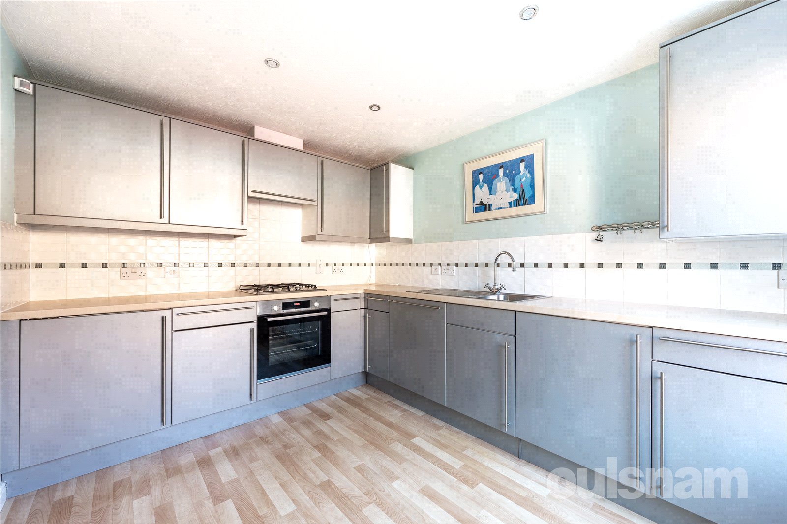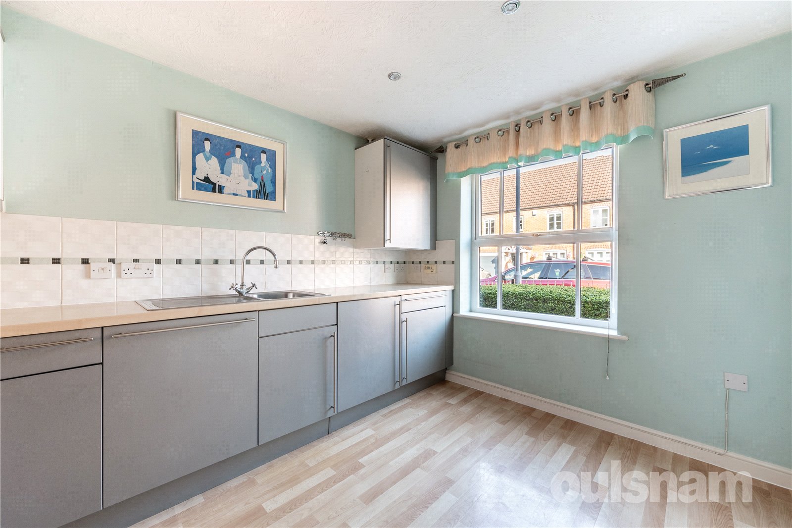 * The breakfast kitchen is fitted with a range of wall mounted, wall and base units having a rolled edge work surface over, tiled splashbacks and stainless steel sink inset with mixer tap over. Integrated appliances include 'Indesit' combined washer/dryer, dishwasher, undercounter fridge/freezer and electric oven with gas ring hob and extractor above. There is a double glazed window to the front aspect;