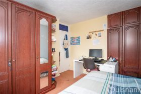 Bedroom two which has a suite of fitted wardrobes and a window looking out to the rear.