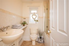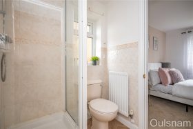 Jack & Jill Shower Room which has a low level toilet, an enclosed shower cubicle and a window looking out to the side. The shower room services bedrooms two and three with doors off to both.