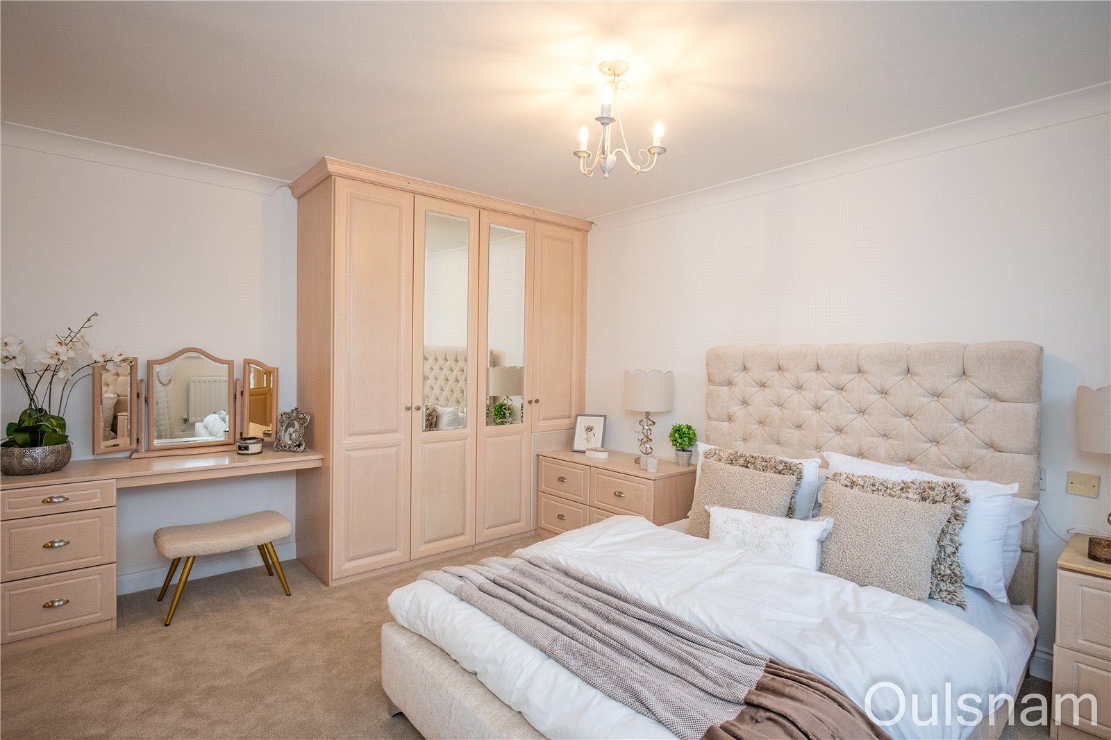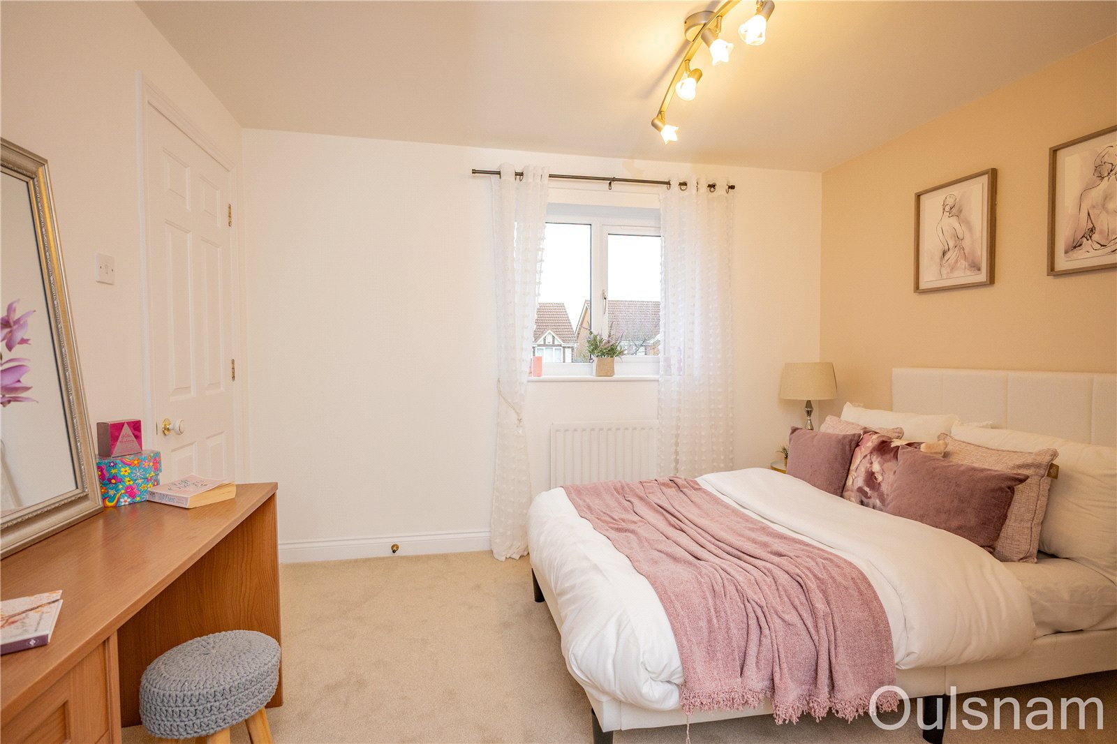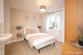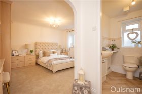 Bedroom one which is accessed via a dressing area which has fitted wardrobes. There is a door a from the dressing area to the en-suite and an opening into the bedroom. The bedroom has a suite of fitted units and a window looking out to the front.