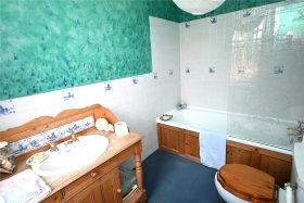 The first floor landing has stairs to the second floor and doors to three double bedrooms, shower room & separate w.c. The bedrooms have feature fireplaces and bedroom one has a panelled door leading to the en-suite bathroom with white suite comprising bath with pine side panel, wash hand basin set into a pine washstand and low level w.c. with wooden seat.