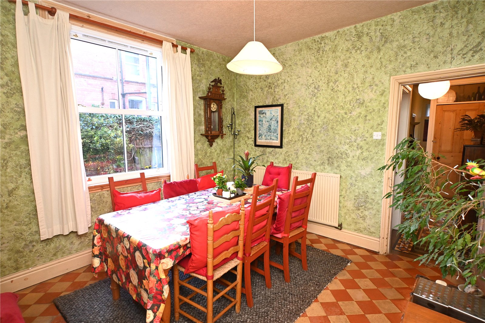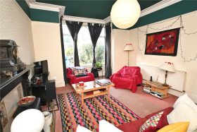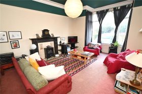 The sitting room has a deep secondary glazed walk-in bay window to the front, deep original ceiling cornicing & picture rails and feature polished slate fireplace and mantel with tiled inset and hearth.