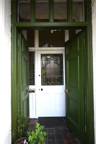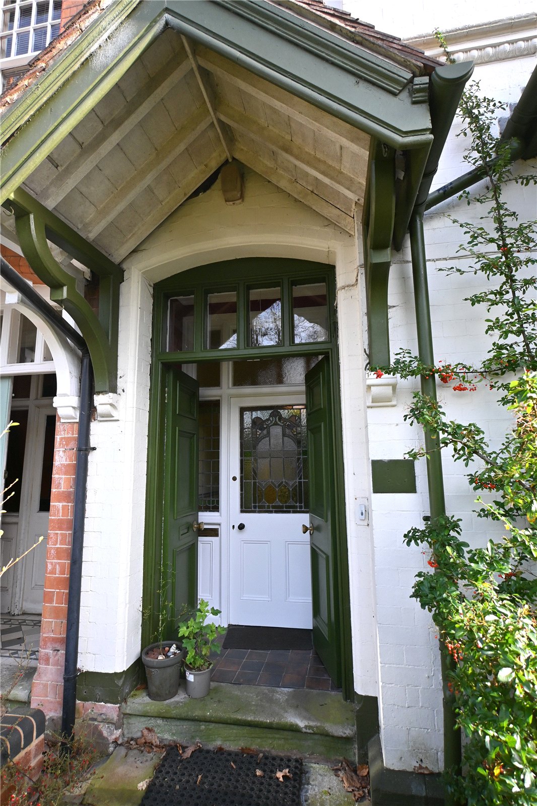 Set back from the road behind a deep gravel driveway providing off road parking for two to three cars and flanked by a wealth of mature shrubs and flowering plants. Access is given to the gated side entry and feature pitched canopy porch with double wooden doors and top light over leading to the entrance vestibule with quarry tiled floor. A panelled inner door with ornate stained glass inset leads in turn to the reception hall.